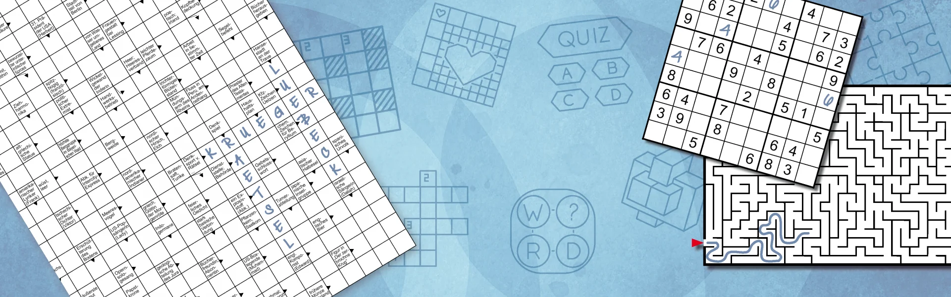 Wir produzieren professionelle Kreuzworträtsel, Schwedenrätsel, Sudokus und andere Denksportaufgaben für Zeitungen und Zeitschriften. Darüber hinaus gehören auch Horoskope und Schachaufgaben zu unserem Leistungsspektrum. Auf Wunsch übernehmen wir auch die Preisakquisition für Ihr Gewinnspiel. Mehr über unseren Service erfahren Sie
